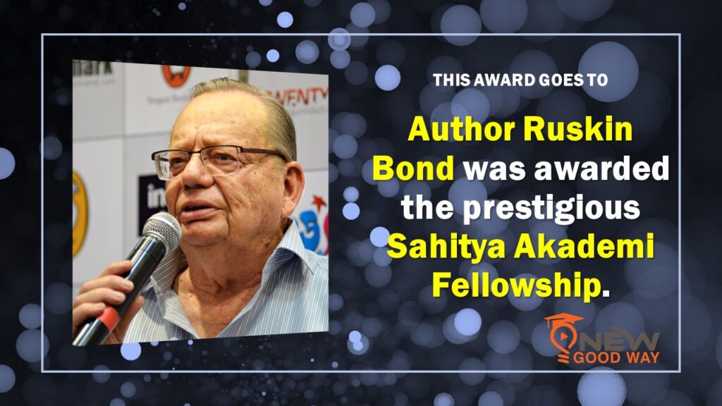 लेखक रस्किन बॉन्ड को प्रतिष्ठित साहित्य अकादमी फेलोशिप से सम्मानित किया गया।