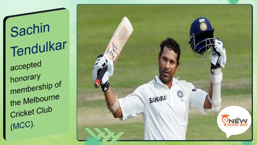 सचिन तेंदुलकर ने मेलबर्न क्रिकेट क्लब ( MCC ) की मानद सदस्यता स्वीकार की है। यह सम्मान तेंदुलकर की 24 वर्षों की अद्वितीय अंतर्राष्ट्रीय क्रिकेट यात्रा और उनके योगदान को मान्यता देता है। MCC की मानद सदस्यता क्रिकेट जगत का सबसे प्रतिष्ठित सम्मान है। यह केवल उन्हीं व्यक्तियों को दिया जाता है जिन्होंने खेल के क्षेत्र में उत्कृष्ट योगदान दिया हो। ऑस्ट्रेलिया के सबसे पुराने खेल क्लबों में से एक, मेलबर्न क्रिकेट क्लब की स्थापना 1838 में हुई थी। यह खेल के प्रमुख स्थलों में से एक, मेलबर्न क्रिकेट ग्राउंड (MCG) के प्रबंधन और विकास के लिए जिम्मेदार है।