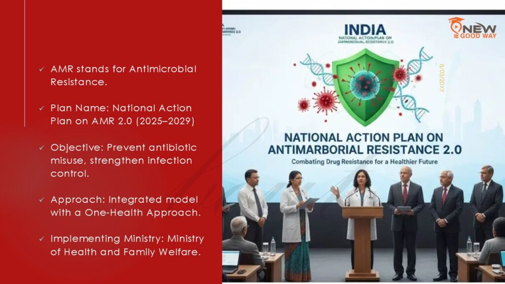 - योजना का नाम: National Action Plan on AMR 2.0 (2025–2029)