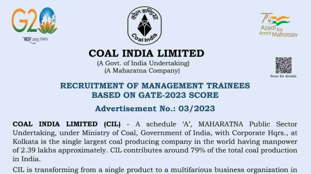 Coal India Management Trainees Recruitment 2023 Overview:-