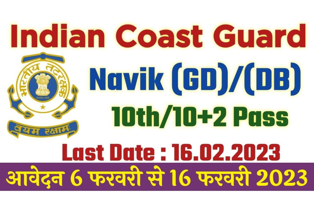Indian Coast Guard Navik सामान्य ड्यूटी और घरेलू शाखा भर्ती 2023 अधिसूचना 255 पदों के लिए जारी की गई है। योग्य और इच्छुक उम्मीदवार आधिकारिक वेबसाइट के माध्यम से भारतीय तटरक्षक नाविक भर्ती 2023 के लिए ऑनलाइन आवेदन करने की प्रक्रिया और सीधा लिंक नीचे दिया गया है। भारतीय तटरक्षक नाविक भर्ती 2023 के लिए आप 6 फरवरी से 16 फरवरी 2023 तक ऑनलाइन आवेदन कर सकते हैं।